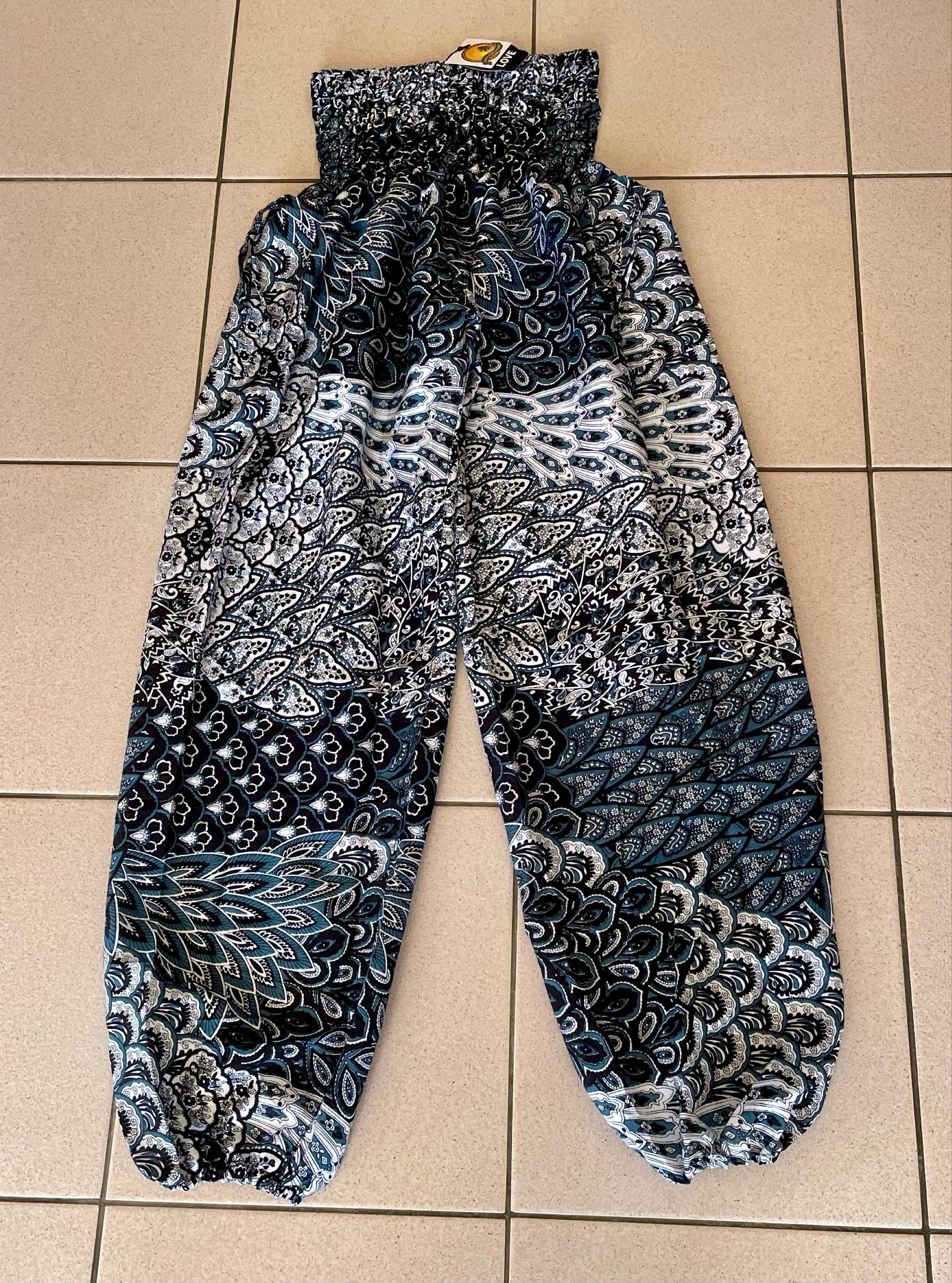 These cute hippie pants are colorful pants and handmade with rayon fabric which make them super comfy to wear. They have an elastic waist and elastic ankles. The two pockets are fitted with decorative strings. These trousers are are perfect for relaxing at home, working out, yoga running, beachwear and general casual wear. Also recommended for Thai massage, dance and festivals. Lannaclothesdesign products are uniquely designed and latest fashion trends. You can choose from many different colors and sizes. We use high quality sewing methods which give all our garments greater durability.