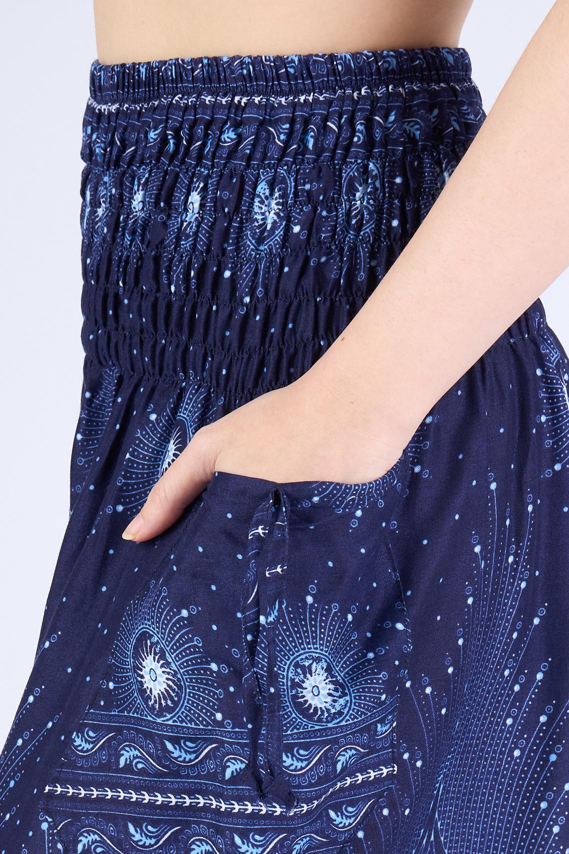 Blue Harem Pants for Women – embrace effortless comfort and timeless boho style. Made from soft, breathable, and lightweight rayon fabric, these pants keep you cool and relaxed from morning to night. The smocked elastic waist provides a flattering, flexible fit, while two practical side pockets add convenience for your everyday adventures. Gently elastic ankles complete the flowy boho silhouette, perfect for easy movement and graceful style.