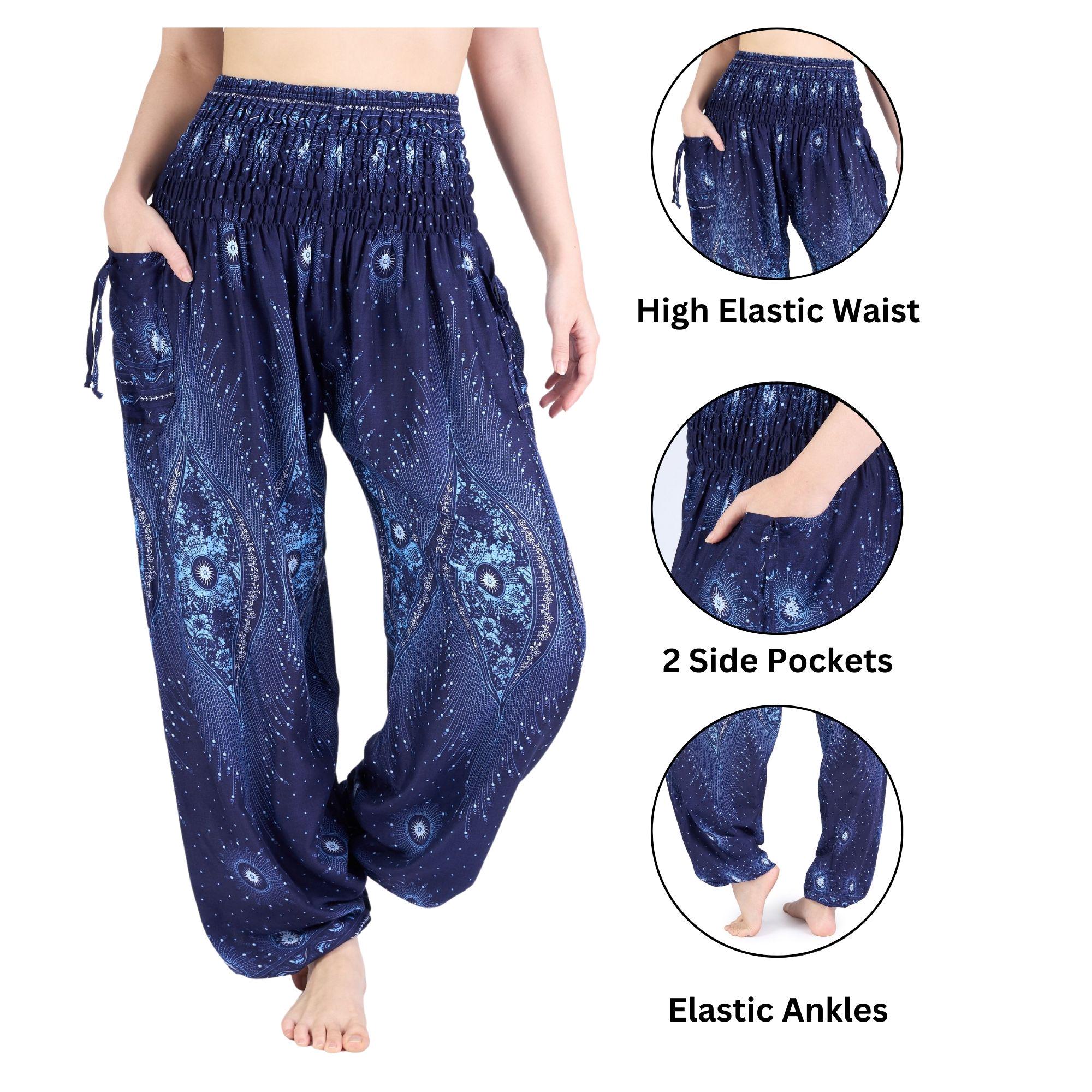 Harem Pants for Women - Blue Boho Pants High Waisted Hippie Womens Clothing - Yoga Pants with Pockets - Thai Pants for Comfy Wear