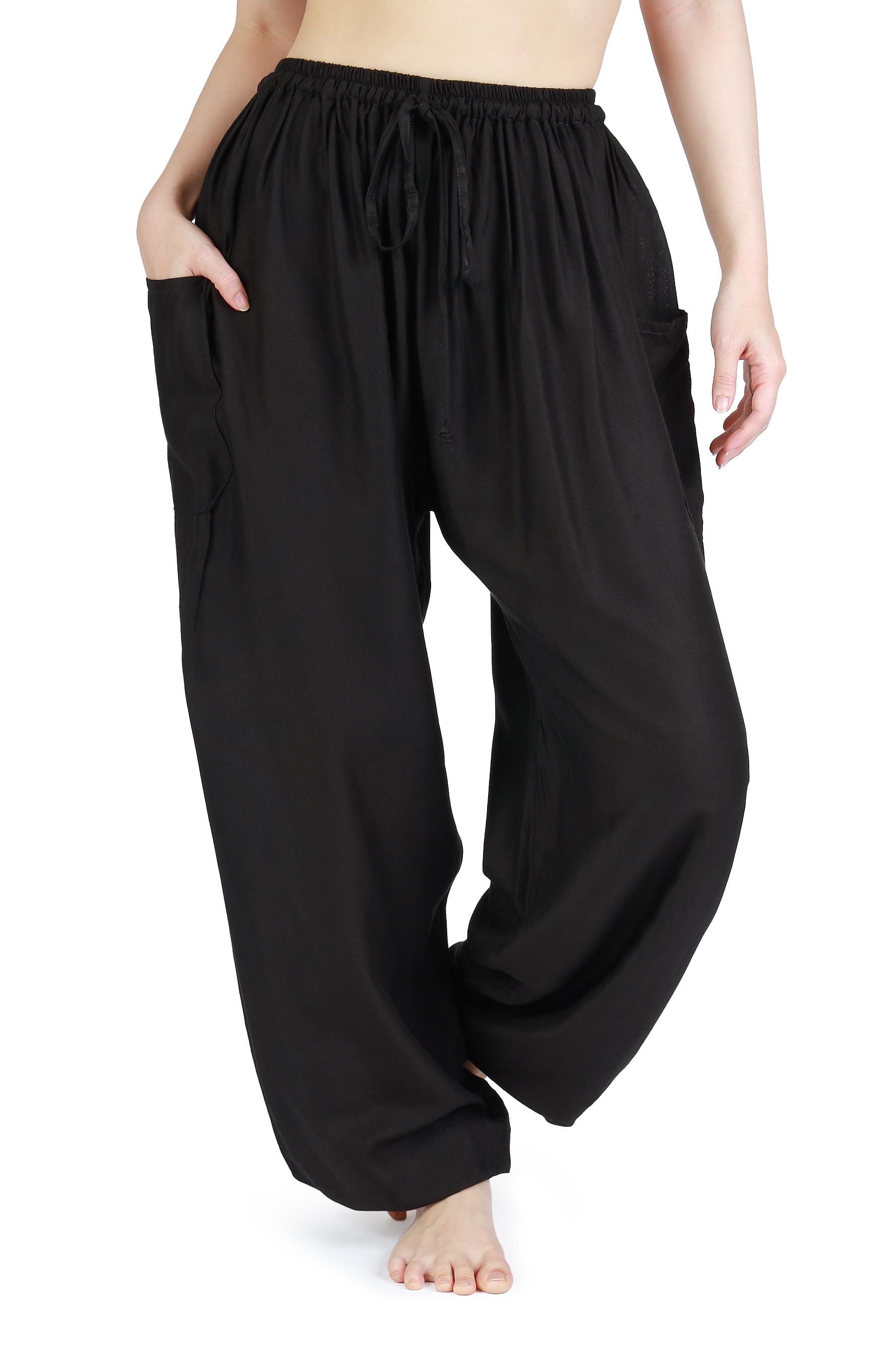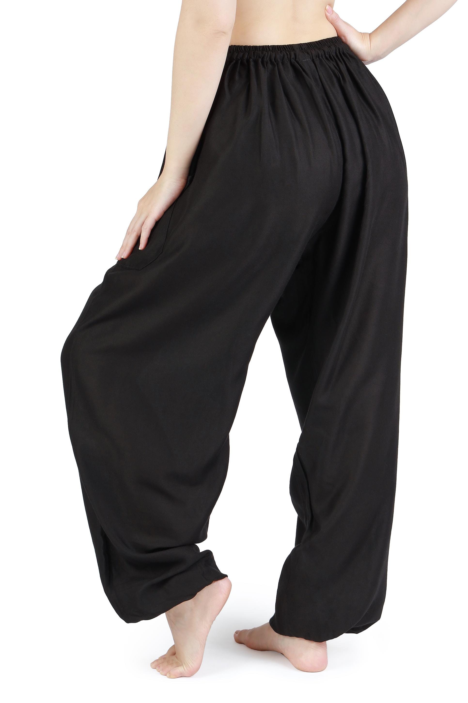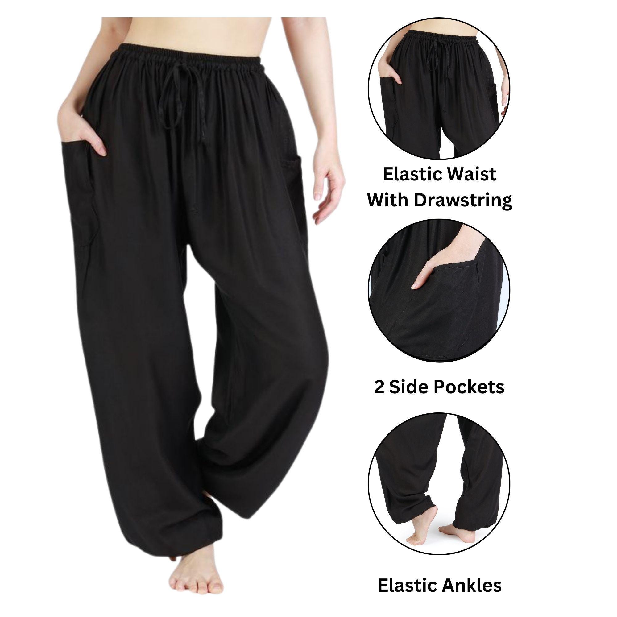 Black Harem Pants Women Boho Yoga Pants - Rayon Trousers with Drawstring, Elastic Waist & Ankles - 2 Pockets - Comfy Lounge Pants S-XXL