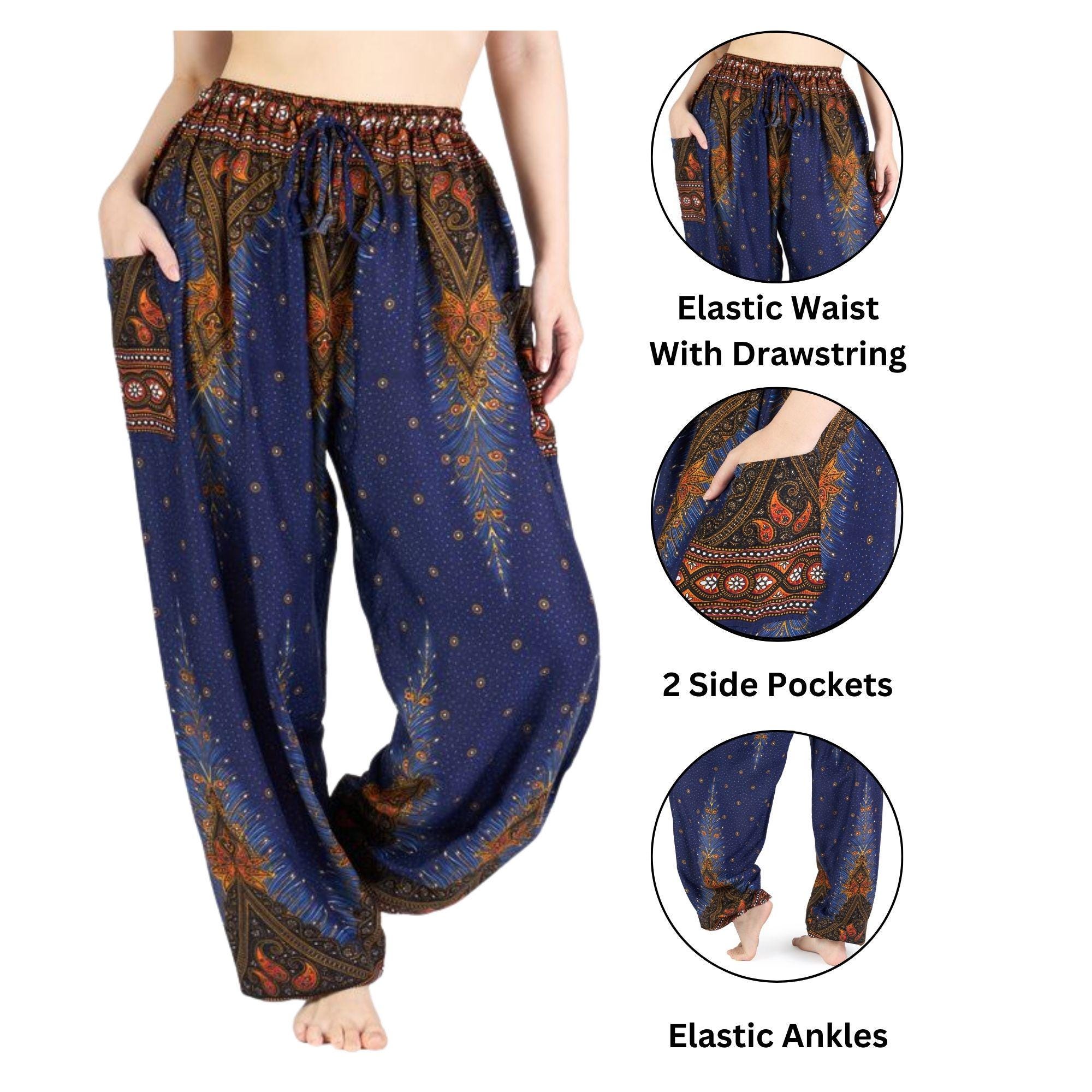 The deep blue tone adds a calm, timeless touch to your boho wardrobe. Perfect for yoga, travel, lounging, or casual days out, these versatile pants combine flowy comfort with relaxed elegance.