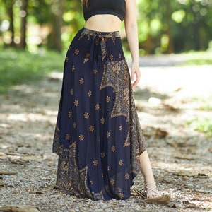 Dark Blue Rayon Maxi Skirt: Bohemian Hippie Style, Plus Size Available