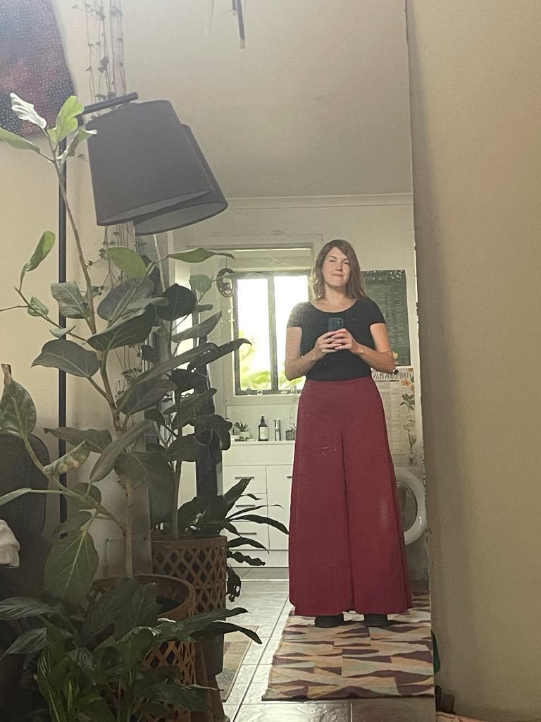 I am so pleased with these trousers. They are both flattering and so comfortable. The material is really nice (a tad see through if they are backlit, but not concerningly so), and the design is really nice. They are very dress up or dress downable. Thanks so much!