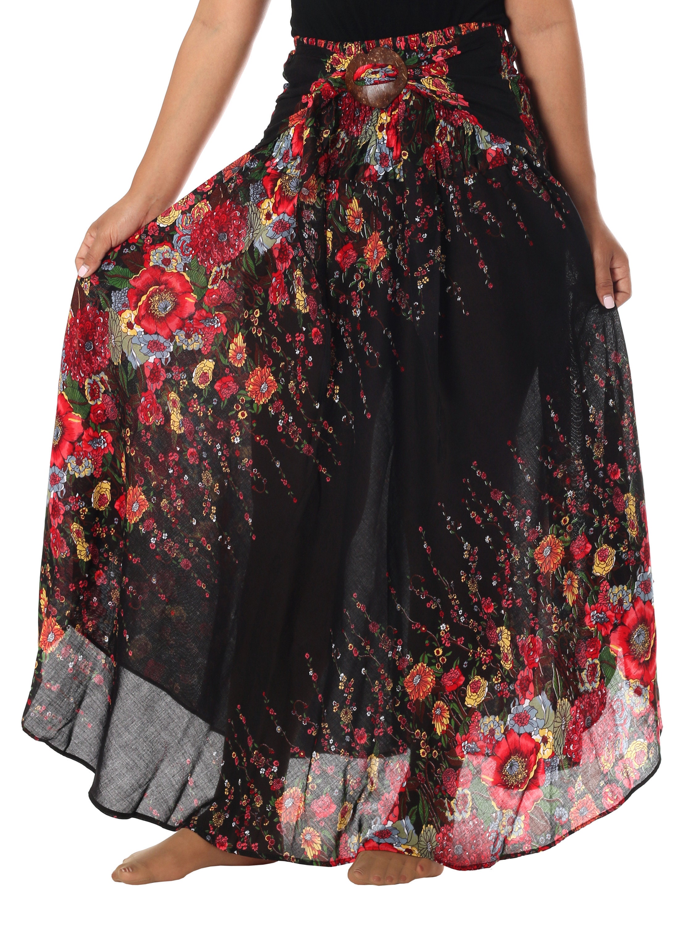 Floral Boho Maxi Skirt for Women Black Rayon Bohemian Dress - Hippie skirt - Summer skirt - Womens Clothing - High Waist Comfy skirt