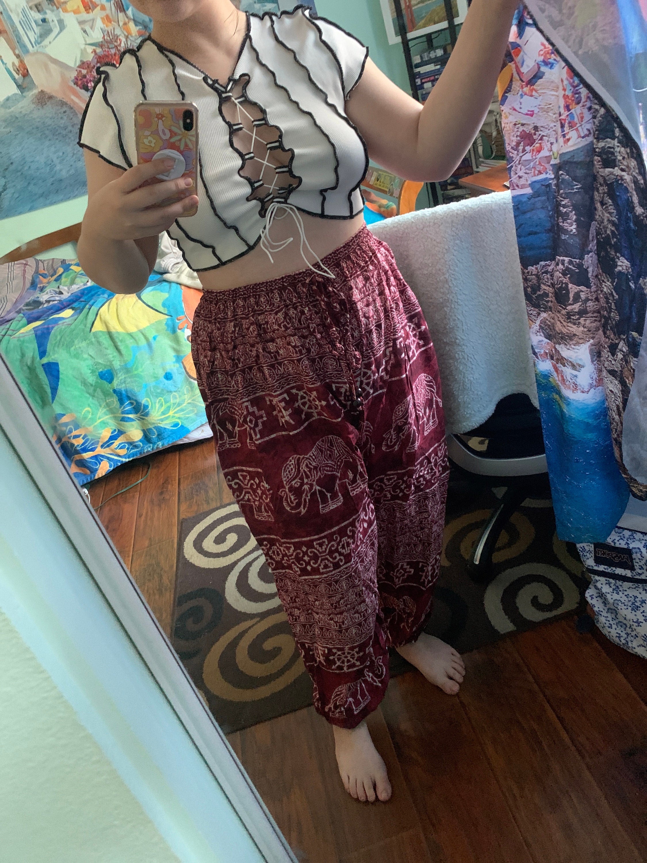 ☛Product Name: BURGUNDY ELEPHANT HAREM PANTS